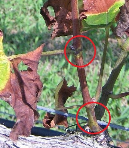 “Matchsticking” leaf has fallen, while the petiole remains attached with a blunt tip.