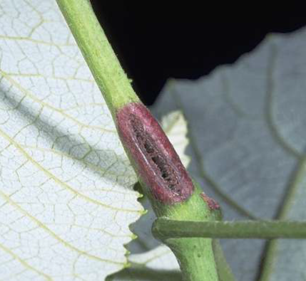 Grape Cane Girdler – the grape cane girdler (Ampelogylpter ater) is an insect that punctures the green shoots, causing the stems to become prone to breakage. Tissue above the girdle will eventually die.