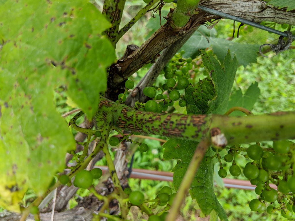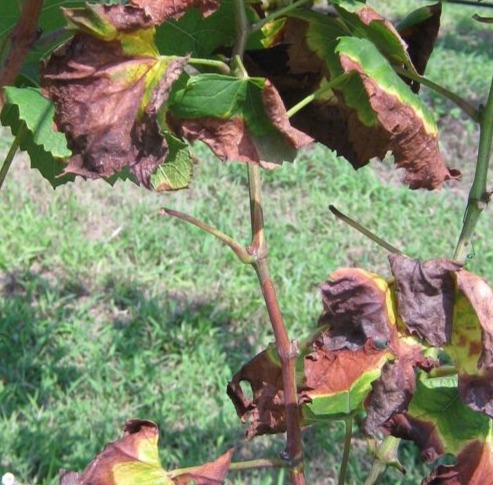 Black lesions on green tissue