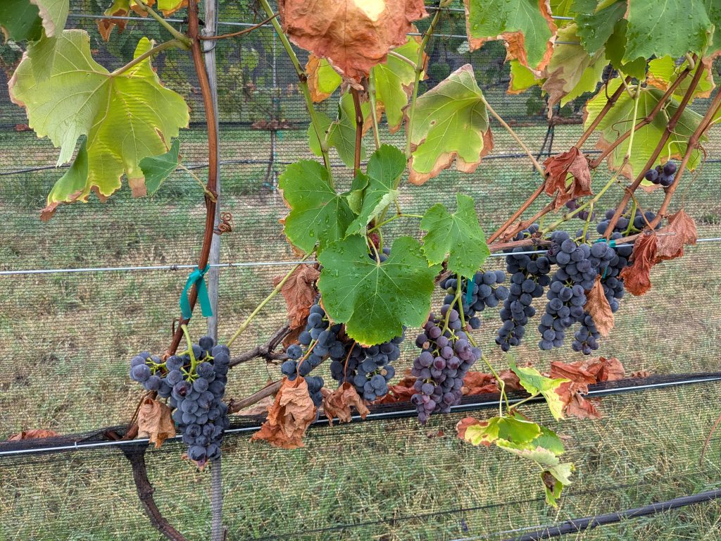 Water stress – One of the first symptoms of water stress is the cessation of shoot elongation. Shoots on the water-stressed vines tend to be short, and flowers may abort or result in smaller berries. Periderm may form earlier on shoots of water-stressed vines. Water stress occurs when the vine is unable to take up enough water to support the canopy and crop load. Drought is the main cause of water stress; however, excess water, which can kill roots by soil oxygen deprivation, can also cause water stress-type symptoms. Check your local weather history as well as the site conditions, such as soil drainage. Severe drought stress can cause leaves to yellow, brown, and eventually dry and fall off.