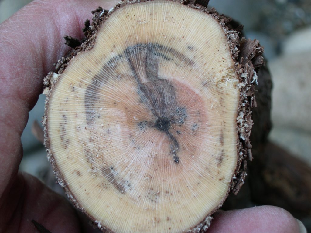 Black sap speck on the trunk/cordon cross-section